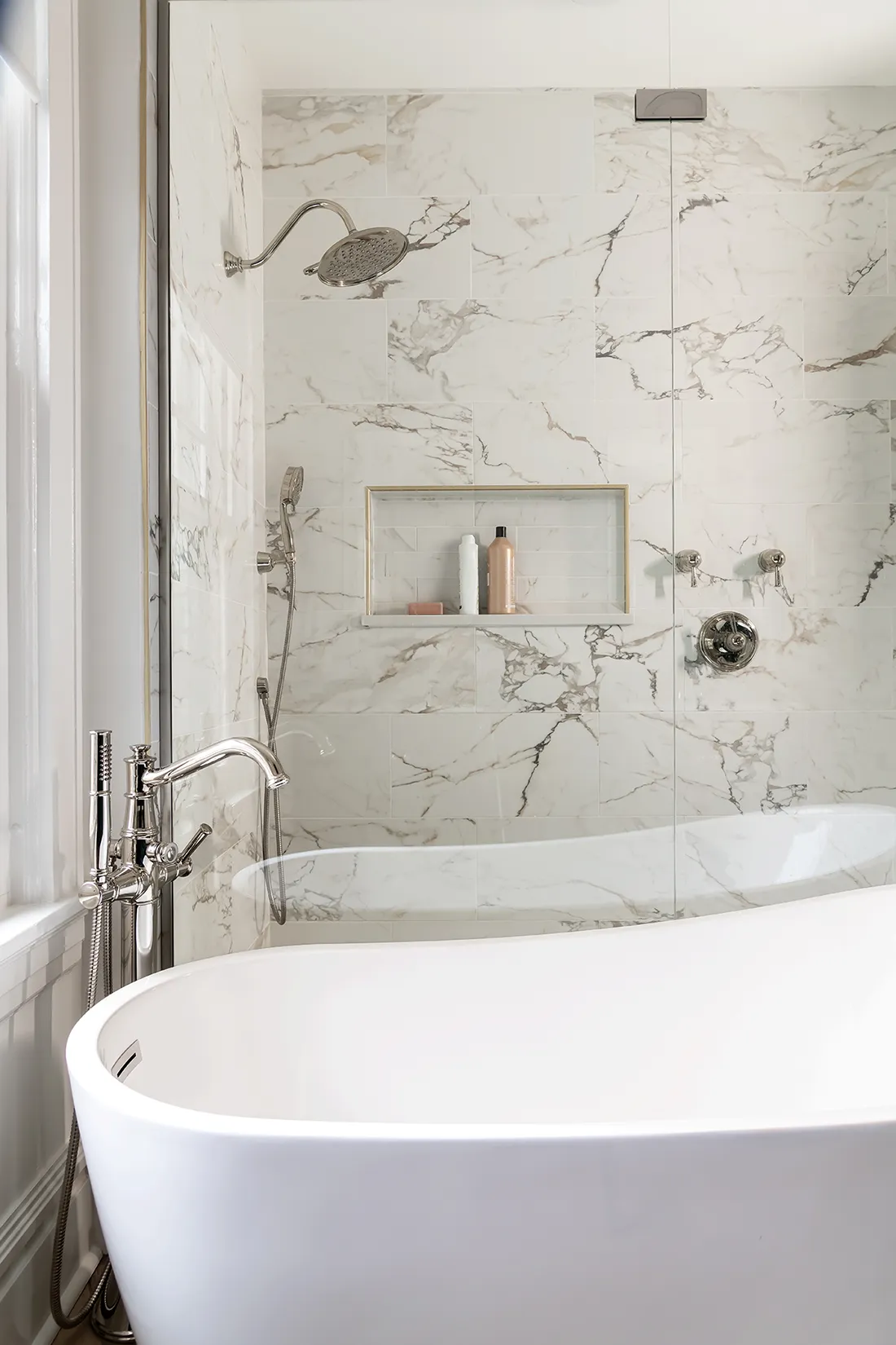 This bathroom renovation transformed an underutilized second floor into a spacious and refined primary suite, thoughtfully designed to complement the character of an Arts & Crafts home. By incorporating an adjacent bedroom into the new layout, the homeowners were able to create a luxurious retreat complete with a generous walk-in closet and an expansive new bath.